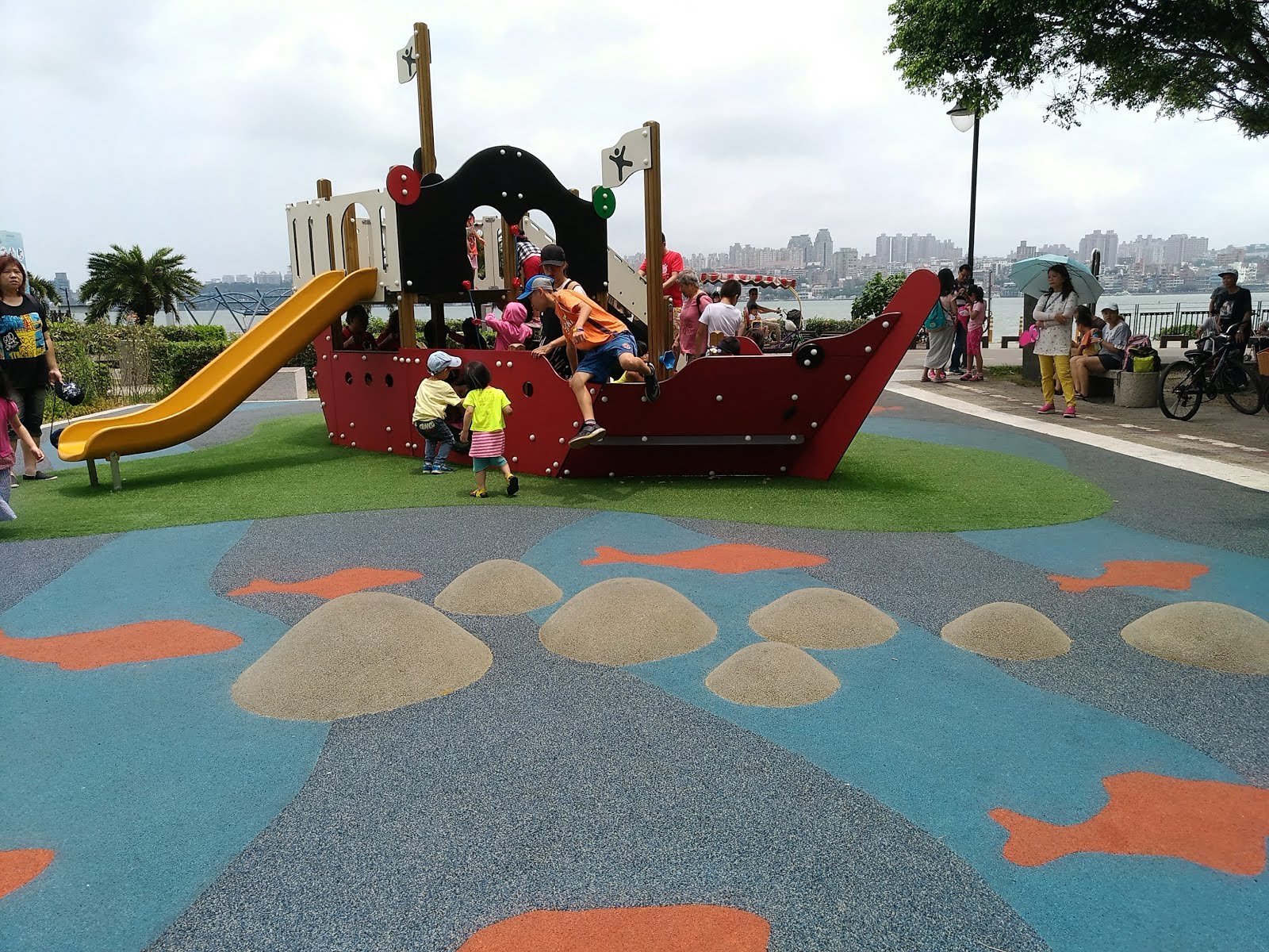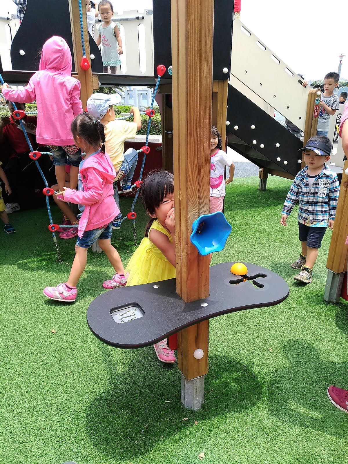咪路阿樑老早已經跑到遊樂器材區玩耍了